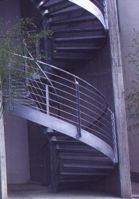 Různé druhy zábradlí, schodišť, vrat a jiných ocelových konstrukcí